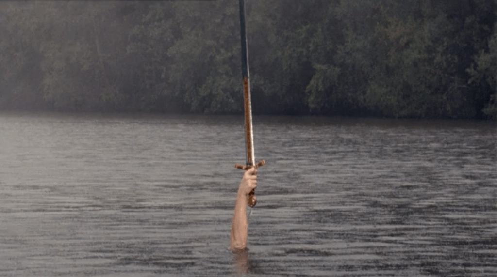 I remembered another mini series starting Anjelica Houston that came out around the same time called the Mists of Avalon. Both stories are based on Aurthurian legend. Both have the Lady of the Lake.